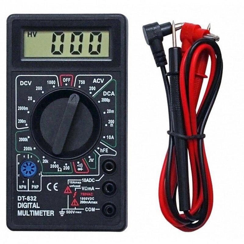 Мультиметр DT 832 широко використовується як в домашньому господарстві і майстернях, так і в лабораторіях. Він призначений для вимірювань постійного/змінного напруги і струму, опору, перевірки діодів, транзисторів і звуковий продзвонювання. Діапазон температур, при яких модель видасть результати з гарантованою точністю, становить 18-28° С.
